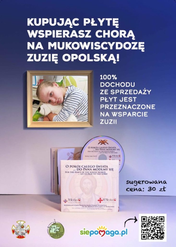organizuje akcję sprzedaży płyty CD z utworami liturgicznymi i narodowymi z której to dochód w całosci będzie przeznaczony na leczenie Zuzi.